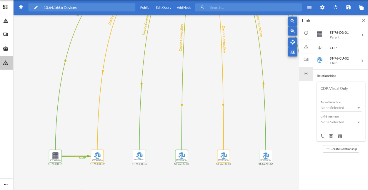 • In the Relationship Type drop-down, select the type of relationship you want to create for these two devices. Your options include: Ad Hoc, CDP, LLDP, Layer-2, and Layer-3.