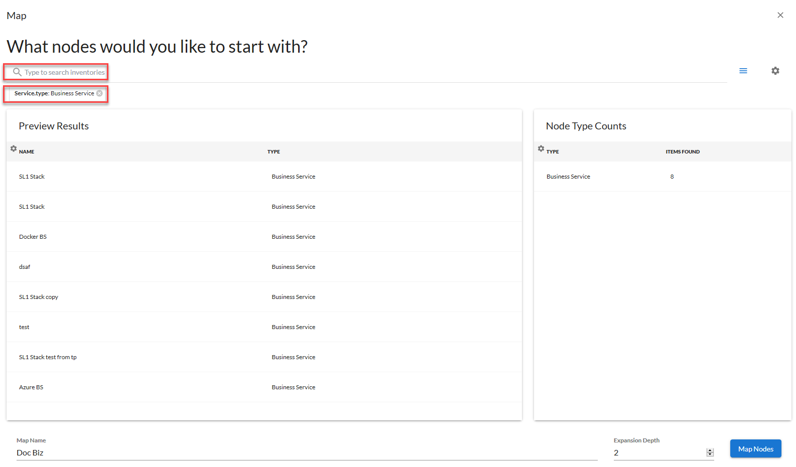 While Classic Maps (Views) used Device Groups when generating maps, the maps on the Maps page use a query that searches for relevant devices as well as services.