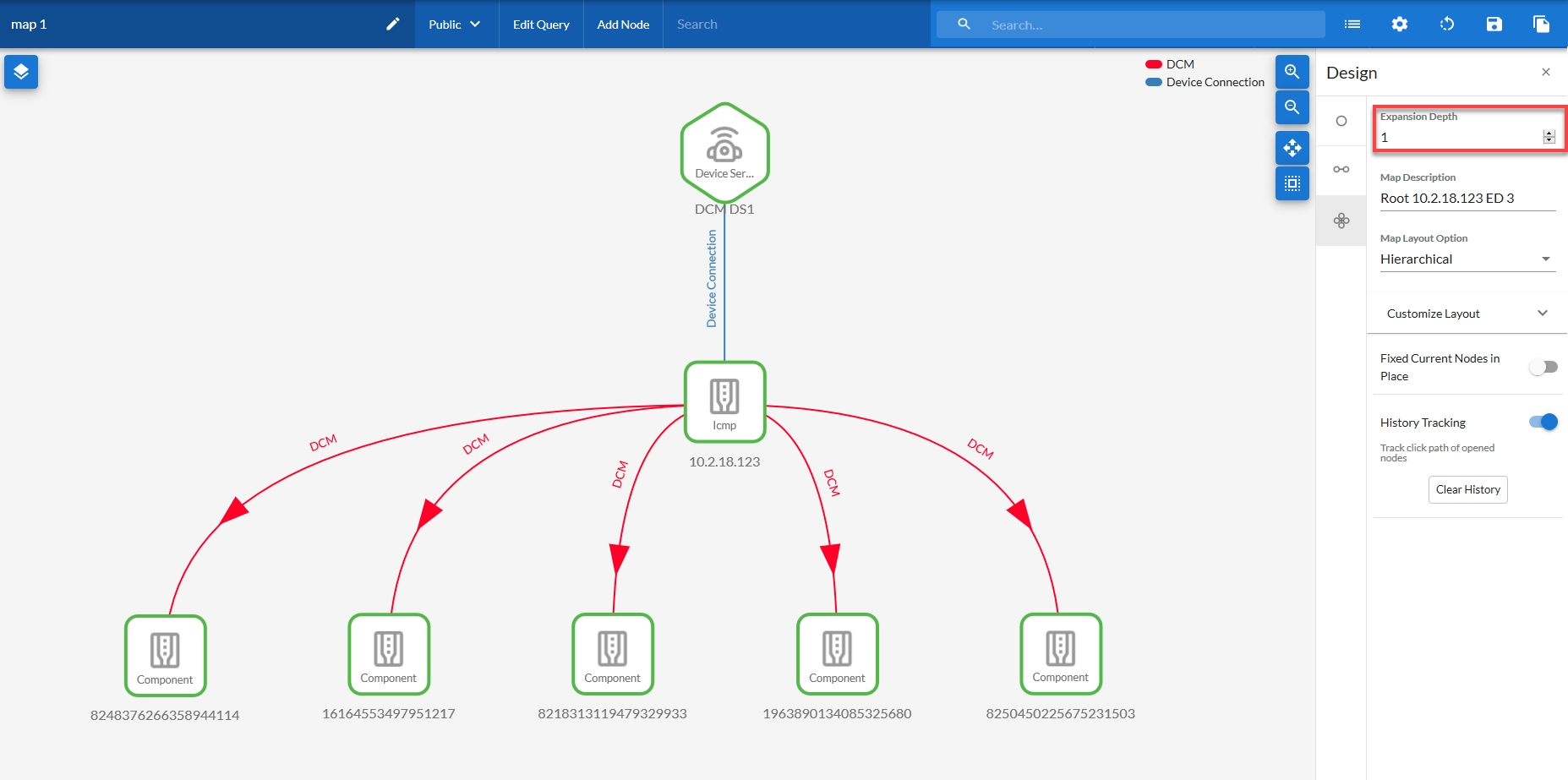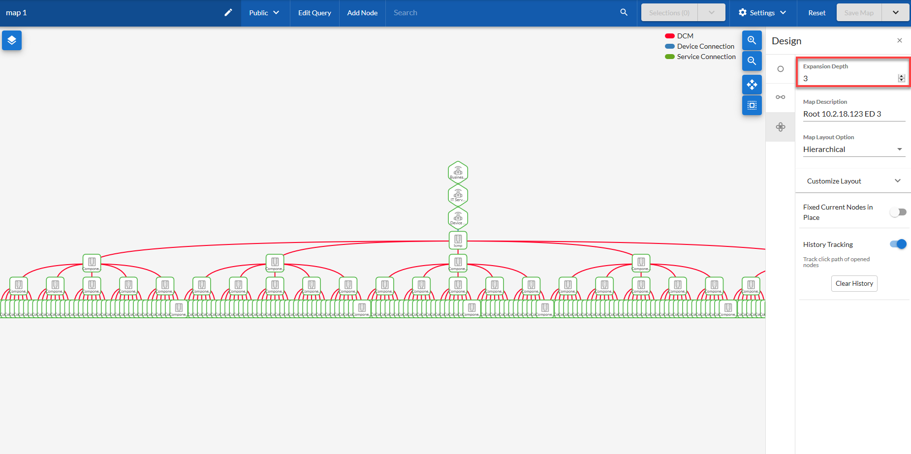 4. If needed, edit the Expansion Depth field to change the number of tiers or "hops" that you want the selected nodes to expand and display by default.