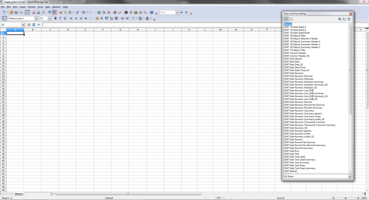 - Select cells A1 - J20, then, in the Styles and Formatting toolbar, double click on "Default". The Report Output Template will look like this: