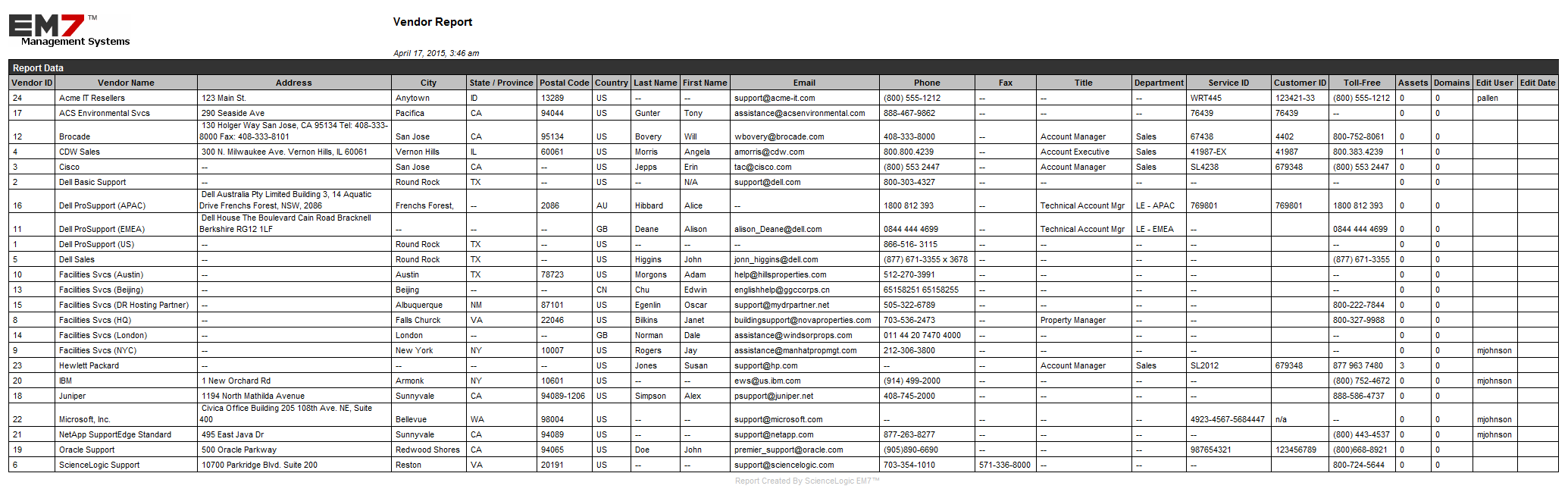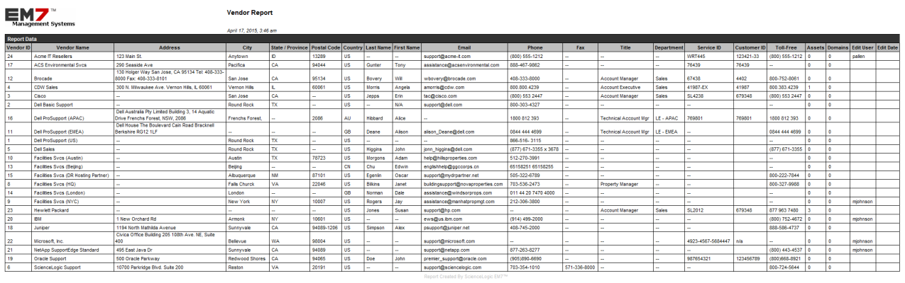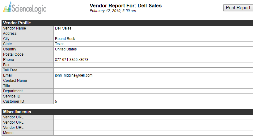 ). An HTML report appears, populated with data from the selected vendor. - You can print the report or right-click to save the HTML page.