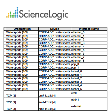 This description covers the latest version of this report as shipped by ScienceLogic. This report might have been modified on your Skylar One system.