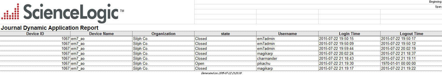 EM7 Administration > Journal Dynamic Application Report