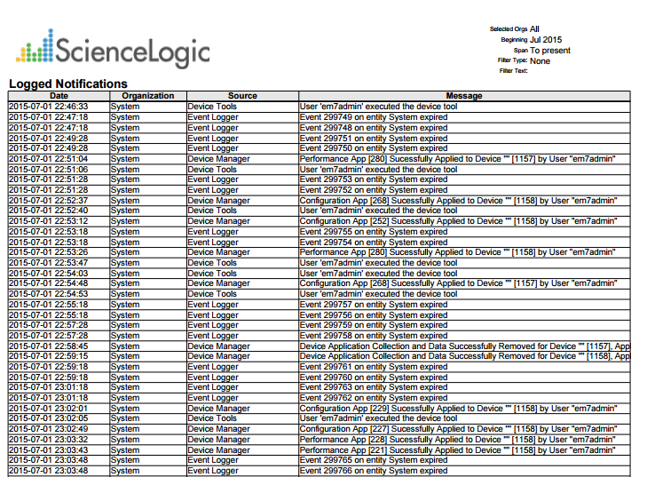 EM7 Administration > Logged Notifications