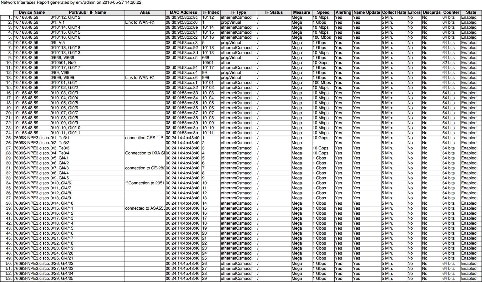 On the Network Interfaces page (Registry > Networks > Interfaces) you can generate a report on all, multiple, or a single interface in Skylar One. The report will contain all the information displayed in the Network Interfaces page.
