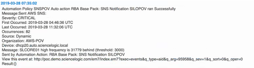 Using the Action Policy in an Automation Policy for AWS SNS