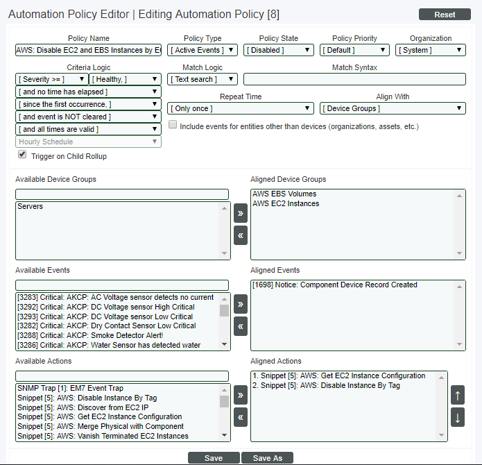 - Policy State. Specifies whether the automation policy can be executed (Enabled) or cannot be executed (Disabled).