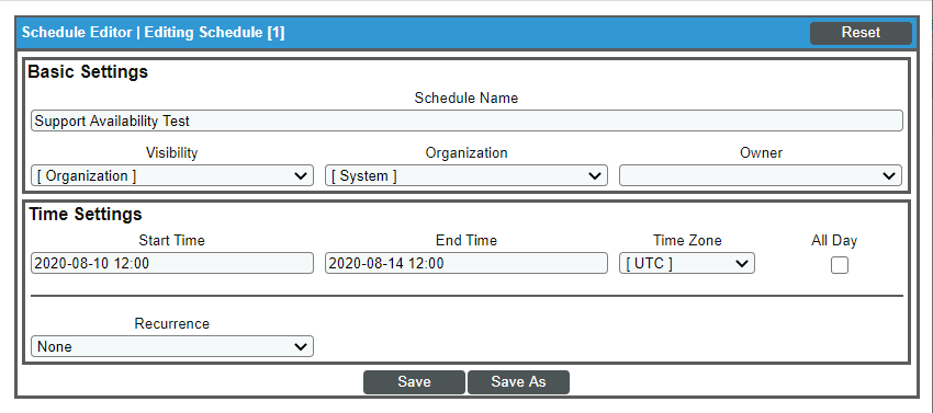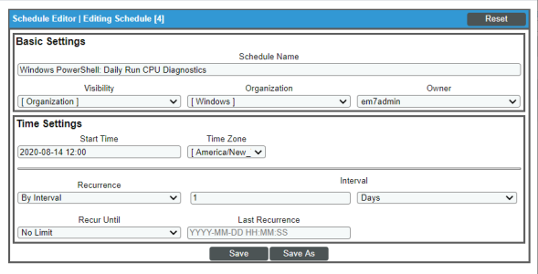 - Available Schedules. Displays a list of all automation schedules from the Automation Schedule Manager page that are not time-limited, that is, that do not have an set End Time. You can select one or more schedules in this field. To select an automation schedule, highlight it and click the right-arrow button.