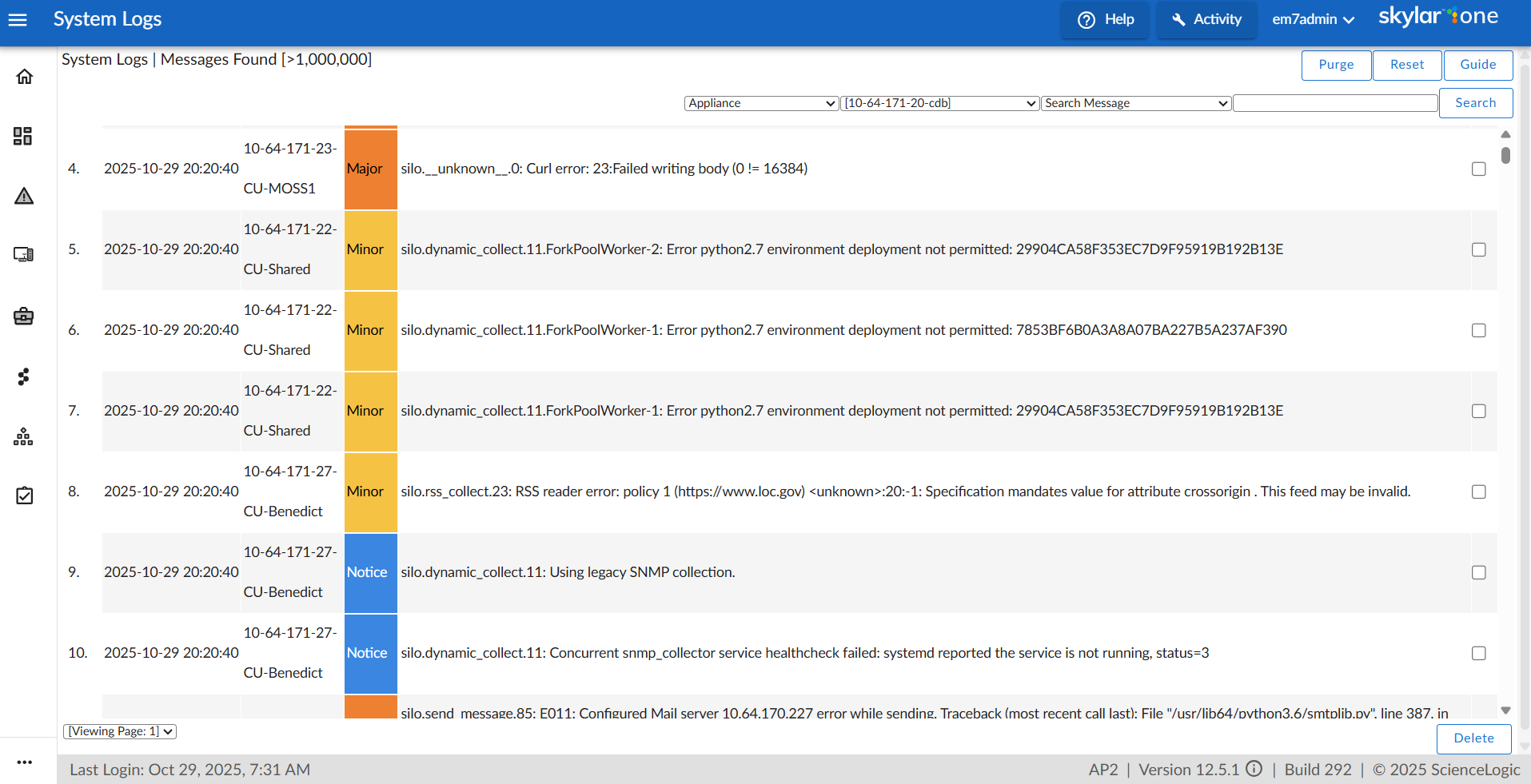 You can also filter the list of logs by appliance, severity, and date.