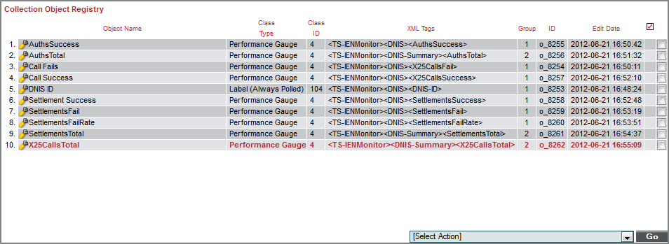 • For the remaining nine collection objects, follow the example above. Once complete, the Collection Object Registry will look like this: